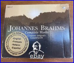 The Johannes Brahms 60 CD Box Set is a comprehensive collection of the complete works by the renowned composer. Presented in a cardboard sleeve, the box set includes works such as quartets, concertos, symphonies, overtures, and sonatas.